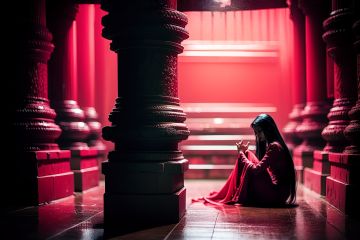 <lora:zskb1:1.5>zskb, 1girl, monster, long hair, black hair, demon, sitting, red theme