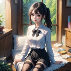Indoor, a girl, uniform, long black stockings, contempt, bust, sexy, sand.