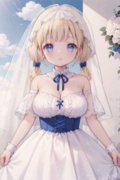 blonde hair, long hair, blue eyes,large breasts,twintails