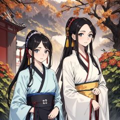 8k,intricate,elegant,highly detailed,majestic,digital photography,cowboy shot,surreal painting,broken glass,(masterpiece, sidelighting, finely detailed beautiful eyes:1.2), HDR, Black eyes,gongbihua, masterpiece, a painting, 1girl, ((upper body)), ((background is full of flowers and leafs)), pale skin, long eyelashes, (Chinese Traditional hanfu:1.3), look at viewer, face front, (hair scrunchie:1.2)