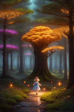 masterpiece, best quality, high quality,extremely detailed CG unity 8k wallpaper, An enchanting and dreamy scene of a fantasy forest, (with towering trees), glowing mushrooms, and hidden fairy glens, creating a sense of mystique and enchantment, BREAK, (1 cute girl, solo, chasing fireflies:1.5, full body), artstation, digital illustration, intricate, trending, pastel colors, oil paiting, award winning photography, Bokeh, Depth of Field, HDR, bloom, Chromatic Aberration ,Photorealistic,extremely detailed, trending on artstation, trending on CGsociety, Intricate, High Detail, dramatic