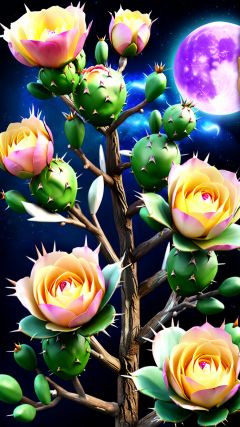 (Fantasy style Magical Prickly Pear Rose: 1.5) Fantasy scenes<lora:sdxl_zhiwu-000010:1>