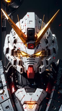 BJ_Gundam,solo,looking_at_viewer,yellow_eyes,no_humans,glowing,robot,portrait,mecha,glowing_eyes,science_fiction,straight-on,v-fin,mobile_suit,cinematic lighting,strong contrast,high level of detail,Best quality,masterpiece,<lora:Gundam_Mecha_v3.1:0.7>,