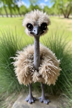 BJ_Sewing_doll, ostrich, solo, closed_mouth, standing, full_body, outdoors, day, blurry, black_eyes, pokemon_\(creature\), no_humans, blurry_background, grass, realistic, animal_focus,photo,8k,highly detailed,digital photography,hdr,realistic,high definition,<lora:SDXL_Sewing_dol_v2:0.7>,