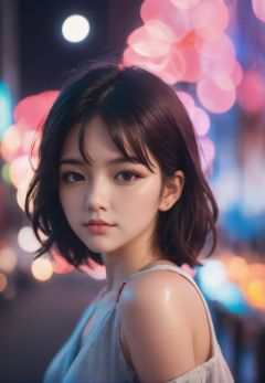 huge filesize,wallpaper,1girl,looking_at_viewer,light spot,<lora:light_spot_SDXL_V1.1:0.8>,glowing neon lights,1980s (style),simple background,retro artstyle,, 1girl,