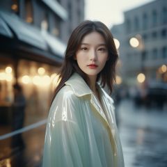 analog film photo chinese girl,cinematic film still,((Establishing_Shot)),((looking away)),expression of enjoyment,an ultra high definition professional high fashion portrait full length photograph,a model wearing a transparent pearlescent raincoat in an icelandic black rock environment at dawn,no artefacts,extremely detailed,stark,refraction,shallow depth of field,volumetric light and shadow,ray tracing,light rays,shallow depth of field,vignette,highly detailed,high budget,bokeh,cinemascope,moody,epic,gorgeous,film grain,grainy . faded film,desaturated,35mm photo,grainy,vignette,vintage,Kodachrome,Lomography,stained,highly detailed,found footage,