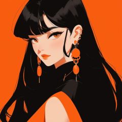 minimalism,  1girl, orange background,  solo,  jewelry,  earrings,  long hair,  black hair,  bangs,  looking at viewer,  mole, <lora:EMS-32776-EMS:0.800000>