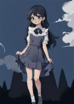 1girl,  <lora:minedress2:1>,minedress2,sky,full body, long hair, earrings