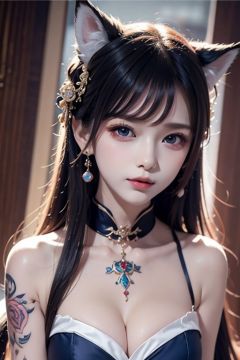 Very detailed CG unified 8K wallpapers,most beautiful artwork in the world,1girl,fox,fox ears,The upper part of the body,Closed_Mouth, nose,Earrings, jewelry, Lips,1girl
