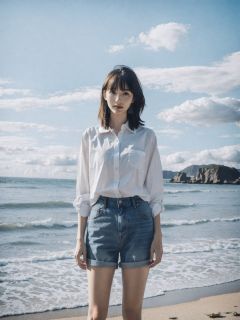 jiFilm,1girl,cloud,Beach,<lora:jiFilm V4:0.8>,