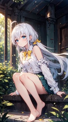 ((white hair)), long hair, young, ((small breast)), No shoes, barefoot
