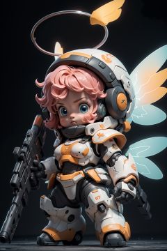 BJ_Cute_Mech,1BOY,solo,breasts,looking_at_viewer,blue_eyes,holding,standing,full_body,weapon,pink_hair,wings,chibi,holding_weapon,armor,gun,halo,blush_stickers,helmet,holding_gun,mecha_musume,power_armor,cinematic lighting,strong contrast,high level of detail,Best quality,masterpiece,White background,<lora:Cute_Mech_style(4080):0.7>,