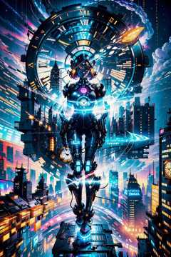 clock_realm,clock,((masterpiece)),((best quality)),8k,high detailed,ultra-detailed,concept art,science fiction,cyberpunk,futuristic,1girl,solo,controlling a holographic time interface,determined,standing on a futuristic skyscraper rooftop,(holographic projections:1.3),(cityscape below:1.1),(technological surroundings),(futuristic outfit),(floating holographic clock:1.5),(glowing cybernetic enhancements:1.2),(intense focus),(dramatic sky),capturing the fusion of technology and time manipulation in a futuristic city,inspired by the style of Syd Mead,<lora:ClockRealm:0.7>,
