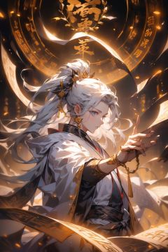 A Chinese teenager wearing a silver armor stands in the air, with characters in ancient Chinese novels shining brightly, handsome in silver clothes, gestures forming spells, martial arts immortality, palace game characters carrying gold runes around, cyberpunk style, neon lights, best image quality, 3D rendering, looking up, ultra wide angle, fisheye, lens focusing on the whole body, 16K, ultra high definition, high resolution, very detailed, best image quality,1 girl