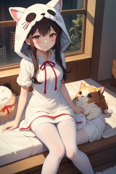 女孩,眯眼笑,white pantyhose,cozy animation scenes,short dress,long hair,cozy animation scenes,yuyao,双马尾,animal hood