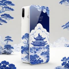 Product display,A mobile phone,huan, no humans,space,wujie,blue and white porcelain