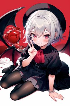 (little girl:1.4), (child:1.4),(petite:1.4), (loli:1.4),,,((solo:1.3)).,1girl, solo, wings, red eyes, hat, remilia scarlet, red background, mob cap, bat wings, ascot, blood, short sleeves, bow, short hair, ribbon, blood on hands, looking at viewer, simple background, full body, puffy sleeves, hat ribbon, blood on face, dress, brooch, red nails, pantyhose, red bow, puffy short sleeves, smile, black pantyhose, wrist cuffs, red ribbon, sitting, jewelry, red ascot, frills, hair between eyes, skirt, white dress, fingernails, sash, shirt, nail polish, no shoes, red theme, sharp fingernails, bangs, tongue, hat bow, grey hair, closed mouth, tongue out, white headwear, slit pupils, blood on clothes, skirt set, hand up, frilled sleeves, invisible chair, white skirt, vampire, frilled shirt collar/.,\nSolo,Battle, {{{{{Slash}}}}},Killing,Attacker,{{Fierce movement}},Ninja,Bloodstain,Core shadow,splatter,{Blood},{{{{Battle scene}}}},angry,Intricate,,{{{Dynamic angle}}},{Stylish pose},{High contrast,Extremely detailed CG unity 8K wallpaper} Sense of movement,blurry background,Kaotic,Lunatic,[[[[[hyper paint, rough design, flat color]]]]],Grin,Whole body,Colorful background,Intricate,Girl wearing black suit,Looking at viewers,{{Stylish}},Persona 5 style art,{{{all out attack(persona 5)}}}