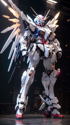 BJ_Gundam, solo, wings, standing, no_humans, glowing, robot, mecha, clenched_hands, science_fiction, v-fin, mobile_suit,cinematic lighting,strong contrast,high level of detail,Best quality,masterpiece,White background,<lora:Gundam_Mecha_v3.5(4440):0.7>,