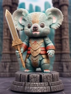 BJ_sanxingdui, solo, koala, 1boy, holding, standing, full_body, weapon, male_focus, sword, holding_weapon, no_humans, holding_sword, furry, furry_male, statue,photo,8k,intricate,highly detailed,majestic,digital photography,broken glass,hdr,realistic,high definition,<lora:Sanxingdui_SDXL:0.7>,
