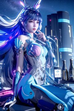(Masterpiece, Best Picture Quality, Special Effects), Cyberpunk, a high-tech mobile phone with projection function. The phone projects content horizontally on a table, projecting a girl, blue hair, bangs, futuristic style (module),Phone case,xwhd,dark aura,cyber effect, (1girl:1.4),solo,alone,mecha musume,mechanical parts, robot joints,single mechanical arm, headgear, mechanical halo,star halo,intricate mechanical bodysuit, mecha corset, full armor, very long hair,white hair, hair between eyes, multicolored hair, colored inner hair, glowing eye,eye trail, random expressions,random action, pond, starry sky,skyline,Pink Mecha,Cyberworld