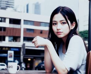 lanfenwei, still-life photography, Cafe , book, Cafe Street,build,  city background,tokyo,sit, film grain, best quality, masterpiece, ((realistic)),Character photography,