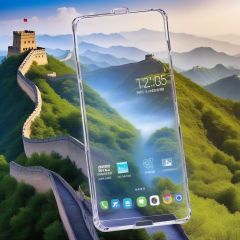 <lora:mobile-000016:0.6>,Transparent smartphones uspended in the air,no humans,The background is great wall,highres,