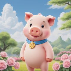 masterpiece, Piglet, Lovely, In the middle of the picture, Mid-range, Outdoor, Light blue sky, Clouds, Garden, Big tree, Pink roses, Collar, Furry, Twelve signs of the Chinese zodiac, textured skin, super detail, best quality <lora:Cutepetparty-000006:0.5>