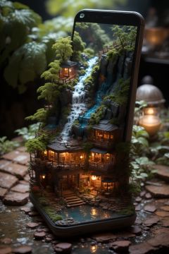 BJ_phone_and_world, water, blurry, no_humans, depth_of_field, phone, plant, scenery, rock,cinematic lighting,strong contrast,high level of detail,Best quality,masterpiece,White background,<lora:phone_and_world:0.7>,