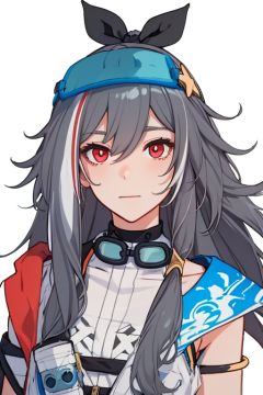 (masterpiece:1.3),(the best quality:1.2),(super fine illustrations:1.2),(Masterpiece),high quality,high detail,(white background:1.2),looking at viewer,(SOLO:1.4),outline,simple background,<lora:识泳装:0.8>, fingerless gloves,red eyes,white footwear,anchor,shoes,silver hair,goggles,hair ribbon,bare shoulders,hair ornament,hair between eyes,hat,ponytail,collar,hairband,grey hair,thighhighs,