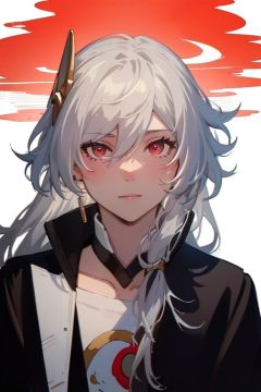 (masterpiece:1.3),(the best quality:1.2),(super fine illustrations:1.2),(Masterpiece),high quality,high detail,(white background:1.2),looking at viewer,(SOLO:1.4),outline,simple background,<lora:识奶茶:0.8>, senti,grey hair,autumn leaves,black jacket,black footwear,red eyes,thighs,messy hair,hair between eyes,jacket,solo,long hair,