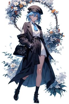 (masterpiece:1.3),(the best quality:1.2),(super fine illustrations:1.2),(Masterpiece),high quality,high detail,(white background:1.2),looking at viewer,(SOLO:1.4),outline,simple background,,solo,fu_hua,1girl,hat,blue_eyes,hair_between_eyes,full body,