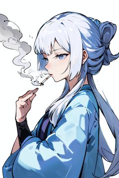 (masterpiece:1.2), best quality,PIXIV, smoking girl,baiyuxiu,white hair,white simple background,  <lora:smoking girl_20230912150007:0.6:1,0,0,0,0,0,0,1,1,1,1,1,1,1,1,0,0> <lora:fenglingyuxiu:1>
