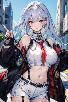 (masterpiece:1.2), best quality,PIXIV, cool girl,enterprise \(azur lane\), , white hair,purple eyes,united states navy, street,(big breast),short shorts, <lora:cool girl_20230913102000:0.7:1,1,1,1,1,1,1,1,1,1,1,1,1,1,1,0,0> <lora:Enterprise:0.8:CHARACTER>