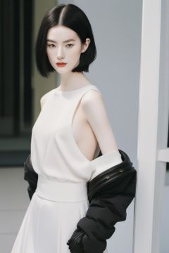 1girl,black_hair,Balenciaga model,looking at viewer,pale skin,blurry_background,realistic,solo,upper_body,<lora:古风仙仙:0.8>,
