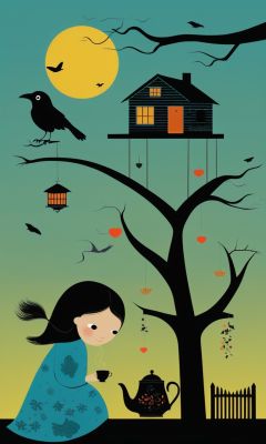 guaidan,1girl,tree, house, crow, dusk, tea, <lora:guaidan:1>,