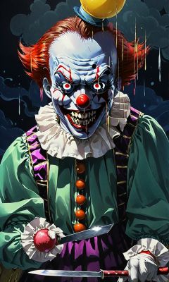 anime artwork guaidan,clown, knife, evil smile,<lora:guaidan:1>, . anime style, key visual, vibrant, studio anime,  highly detailed