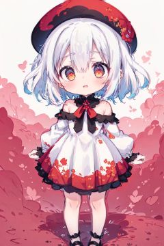 (little loli:1.3), (child:1.2), (Girlish body type), (masterpiece), Exquisite visuals, high-definition, (ultra detailed), finely detail, ((solo)), ((gawr gura)), (medium hair), (white Silver hair), (gradient red), (beautiful detailed eyes), Kawai, loveliness, off shoulder, looking at viewer, bare shoulders, standing, ((full body)), pale skin, (best quality)