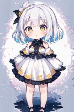 (little loli:1.3), (child:1.2), (Girlish body type), (masterpiece), Exquisite visuals, high-definition, (ultra detailed), finely detail, ((solo)), ((gawr gura)), (medium hair), (white Silver hair), (gradient yellow), (beautiful detailed eyes), Kawai, loveliness, off shoulder, looking at viewer, bare shoulders, standing, ((full body)), pale skin, (best quality)