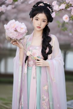 fenmo,fense,1girl,black hair,flower,hair ornament,realistic,holding,hair flower,blurry,holding flower,chinese clothes,looking at viewer,hanfu,black eyes,basket,blurry background,<lora:春赏-000008:0.5>,hanfu,cho girl,