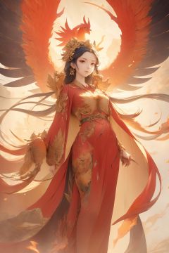 Beautiful woman, Long robe, Phoenix, Reborn from the ashes, Delicate details, Illustration style <lora:Phoenix_girl:0.9>