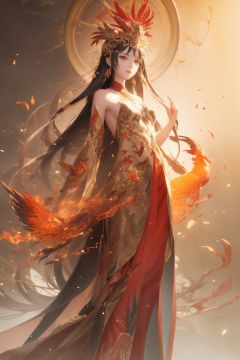 Beautiful woman, Long robe, Phoenix, Reborn from the ashes, Delicate details, Illustration style <lora:Phoenix_girl:0.6>