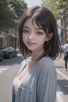 masterpiece, best quality, incredibly absurdress, highres, high detail eyes, high detail background, 1girl, casual outfit, outdoors, looking at viewer, medium hair, smile, close view