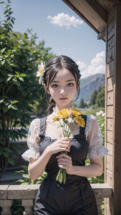 (masterpiece), best quality, high resolution, highly detailed, detailed background, perfect lighting, vivid colors, scenery,1girl, holding flower, victorian