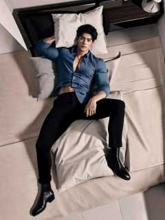 <lora:betaboy:0.2>,<lora:menhard:0.2>, <lora:asianmale_v10:0.3>,<lora:GoodHands-beta2:1>,perfect hands, five fingers on each hand,one young man, (full body:1.5), (short black hair:1.3), (looking at viewer:1.5), (from above:1.3),(unbottoned denim shirt:1.5), black pants, black boots,(lying in bed:1.3),indoor, day, daytime, in the morning, bedroom, window, natural lighting,(muscular, large pectorals, abs:1.3),best quality,masterpiece,ultra highres,photorealistic,realistic