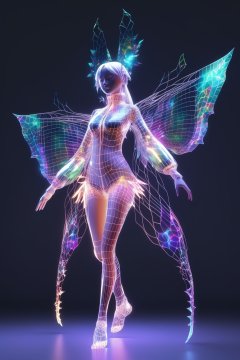 FULL BODY SHOT, 1girl, ((virtual disintegration wireframe rgb:1.32)), (matte skin:1.1)