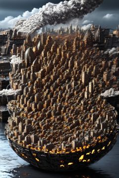 (city:2),cloudy sky,huge spacecraft flying in the sky,Cloud Gray Emerald green,desolate alien landscape,dead trees,swamp,bushes,lonely,symmetric,eery,frightening,sad,dirty,stained,thunderstorm,lightning,masterpiece,8k,highest quality,HDR,UHD,battleship,glowing engines,reflections,intricate,alien invasion,crater,wartorn,dust,smoke,<lora:UnrealNut:0.8>,