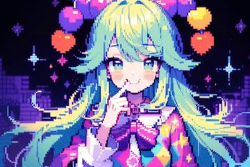 nintendo xsp party girl, in the style of shige's visual aesthetic style, luminous palette, kawacy, mosaic-like, clowncore, cute and colorful, musical academia,pixel art,像素