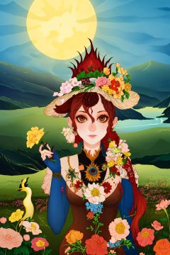 A girl, no humans, sun, flower, UHD, high details, best quality, 16k