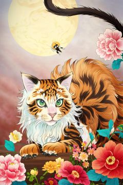 Close-up shooting, A lovely cat, no humans, sun, flower, Look at the camera., UHD, high details, best quality, 16k