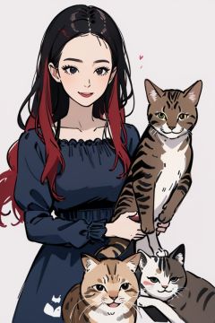 masterpiece,best quality,1girl,cats,lovely dress,long sleeves,multicolored background,(simple background:0.6),
